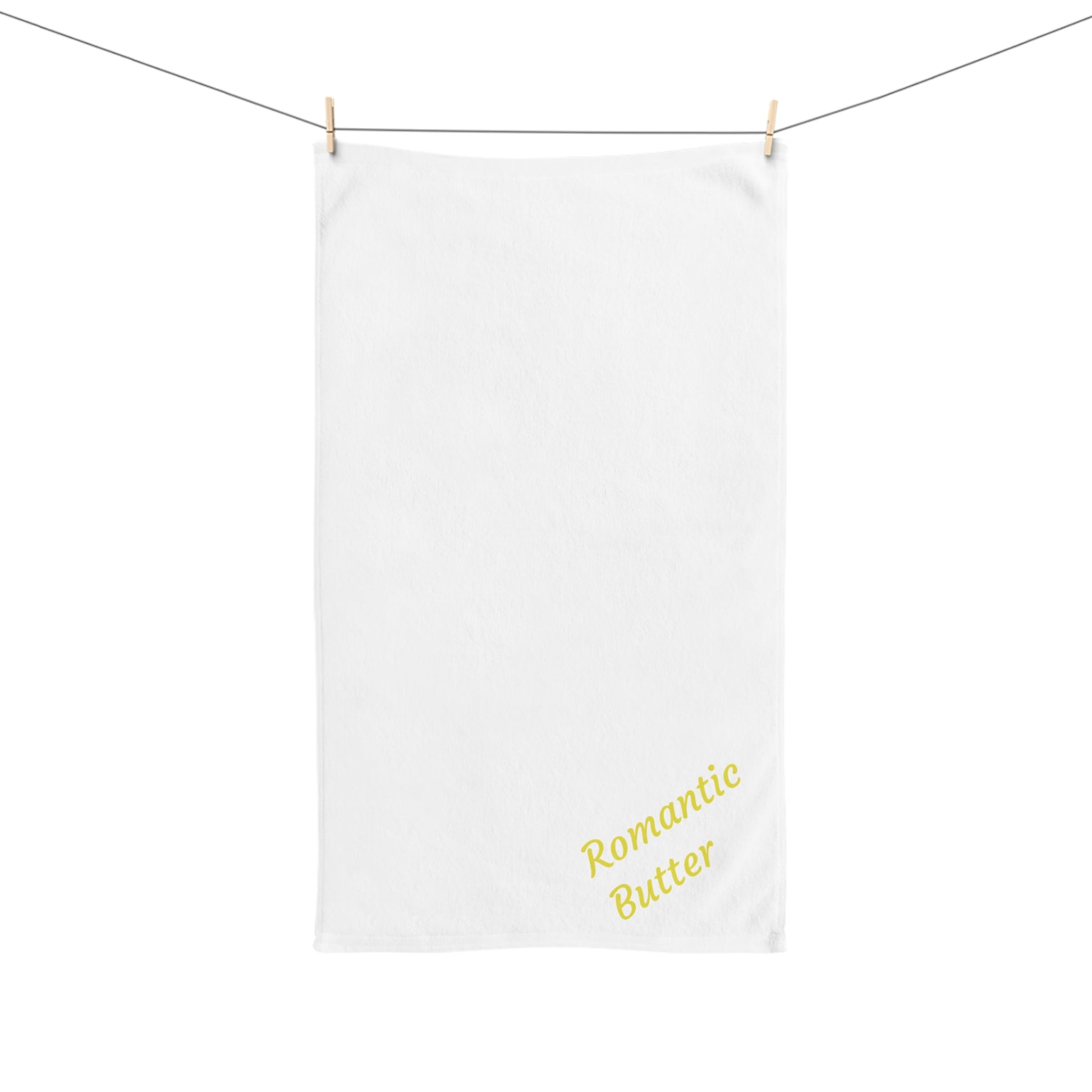 Romantic Butter Hand Towel — Cute Yellow Script Kitchen or Bath Accent